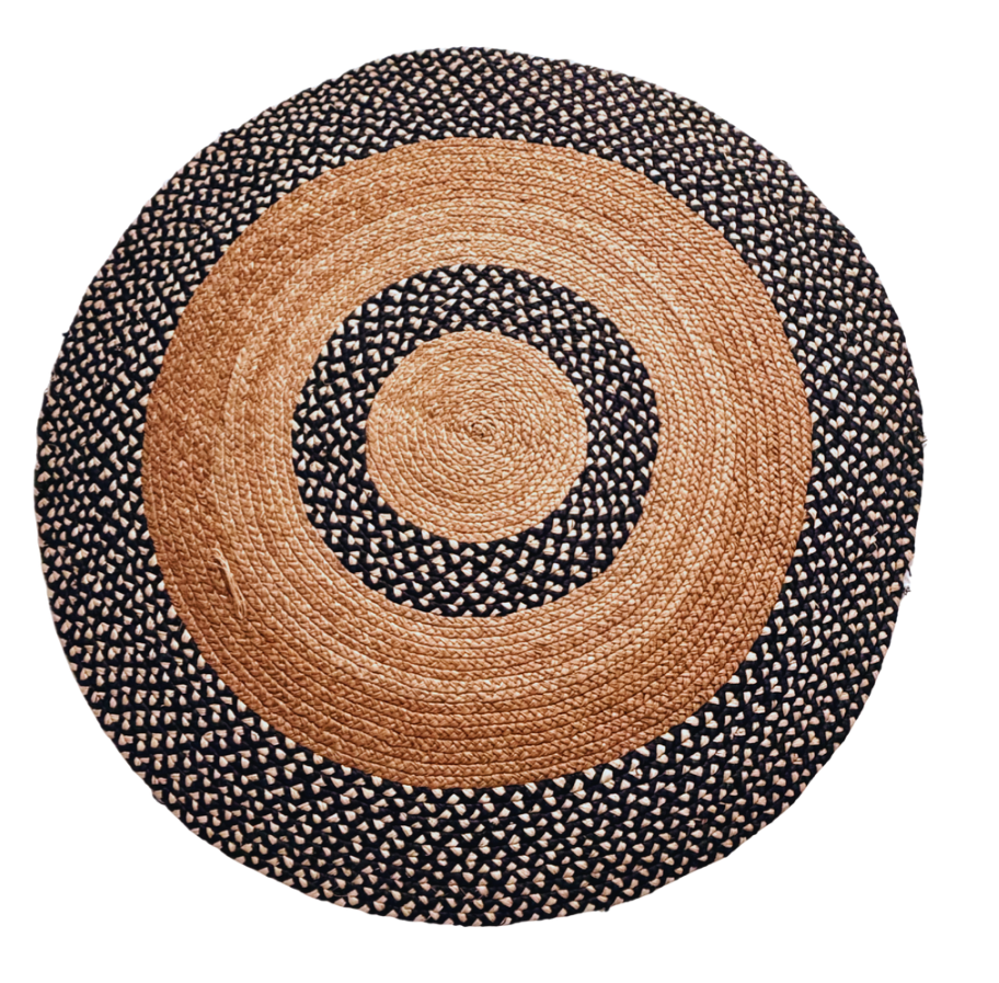 Tapis rond en raphia naturel, entièrement fabriqué à la main à Nosy Be, Madagascar